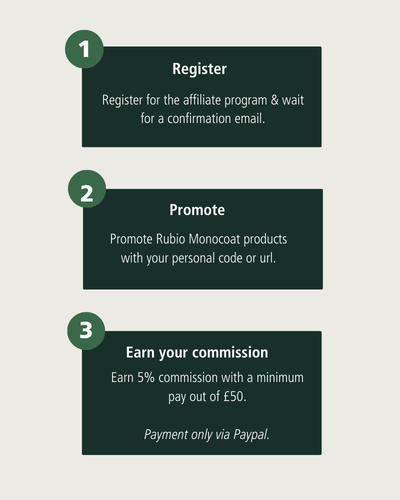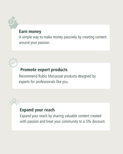 Your code can also be used by your foreign followers on their country's official Rubio Monocoat webshop.