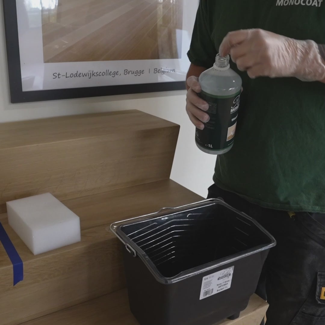Unlike standard cleaners, WoodPrep has a dual function: it cleans the surface by removing sanding dust while opening the pores of the wood for better absorption of finishing oils. It is also formulated to specifically prepare wood before applying Rubio Monocoat finishing products.