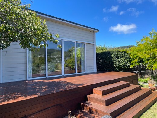 New Zealand møder de store sletter på denne boligterrasse! Den 95 m² store kwila-terrasse blev beskyttet med DuroGrit i farven Steppe Look. Den fik en varm nuance, der står i flot kontrast til landskabet.