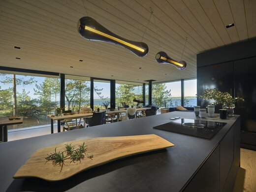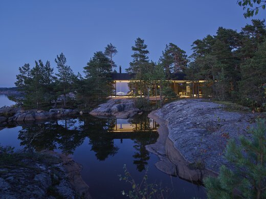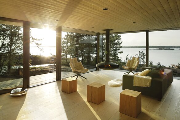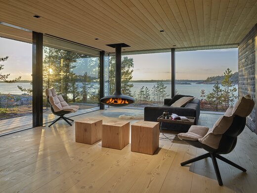 Sikke et syn! Hvem drømmer ikke om at vågne op midt i naturen? Dette moderne træhus hedder Villa Kivi og ligger omgivet af træer på en lillebitte ø i Finland. De smukke omgivelser og træhusets design er et match made in heaven. Det unikke hjem er designet af den finske designer Vertti Kivi, leder af virksomheden dSign Vertti Kivi & Co.
