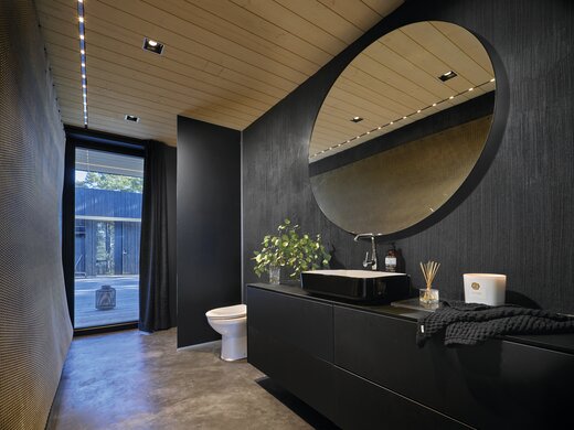 Og som prikken over i'et, er der også en skøn sauna. Saunaen er behandlet med Precolor Easy i farven Intense Black i kombination med Oil Plus 2C i farven Black.