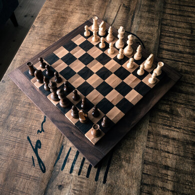 Hvor imponerende er dette skaksæt lavet af Potato Woodworks!